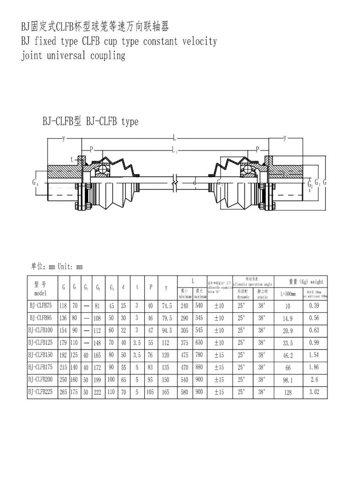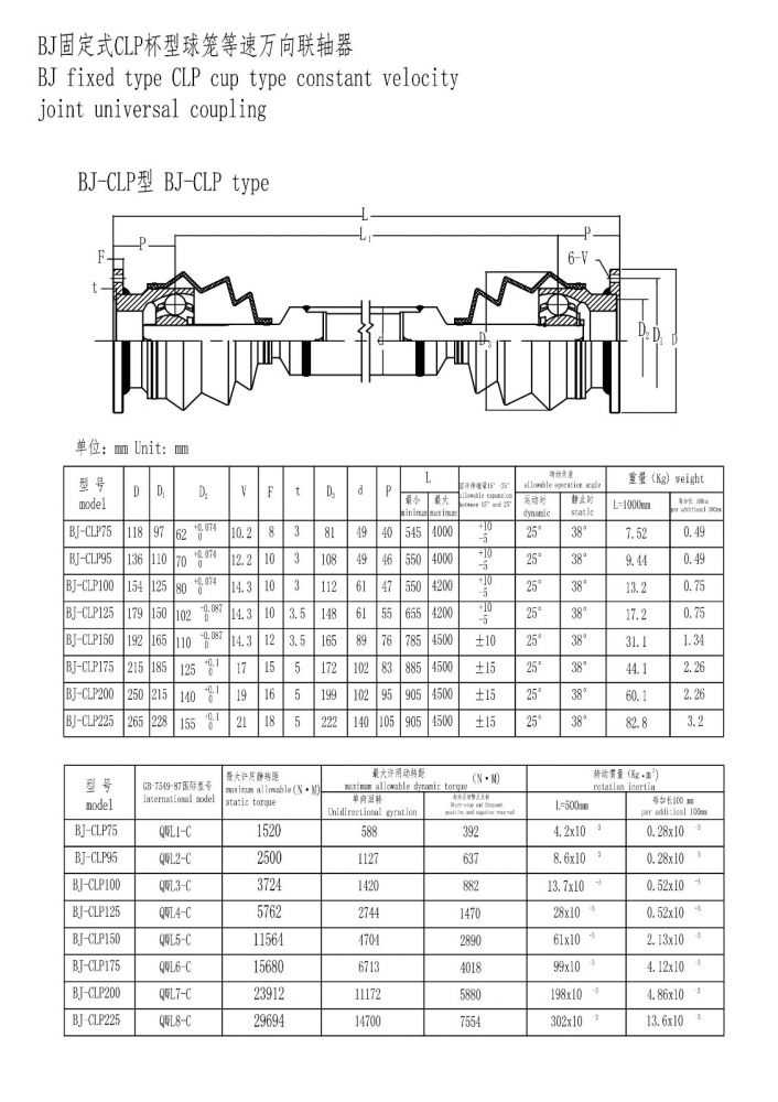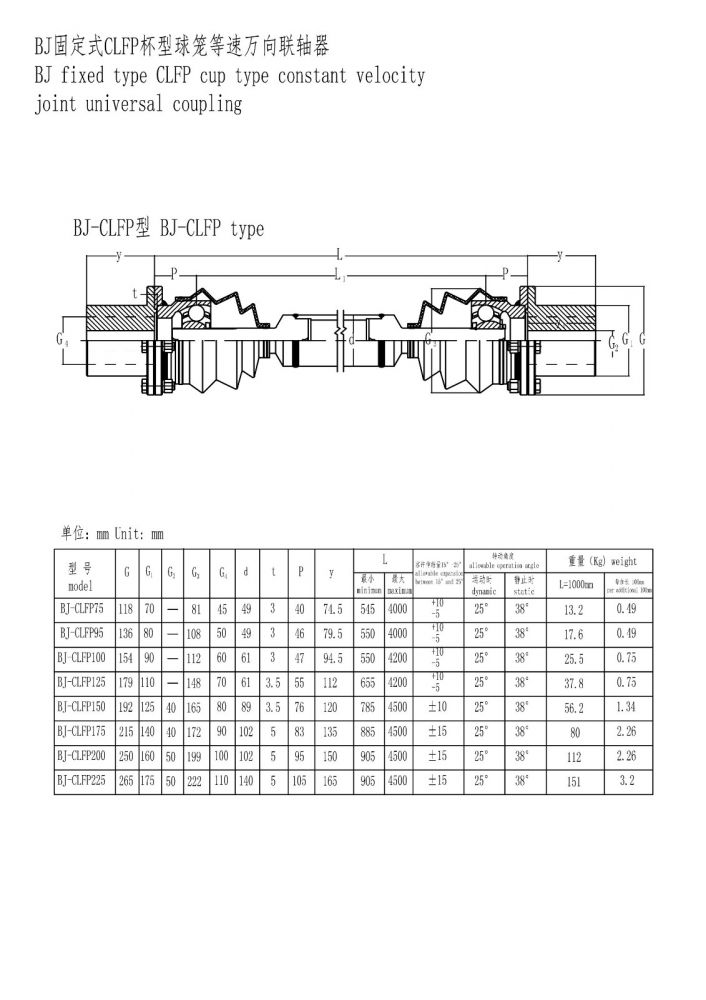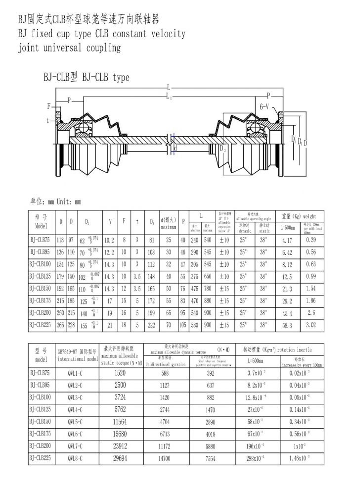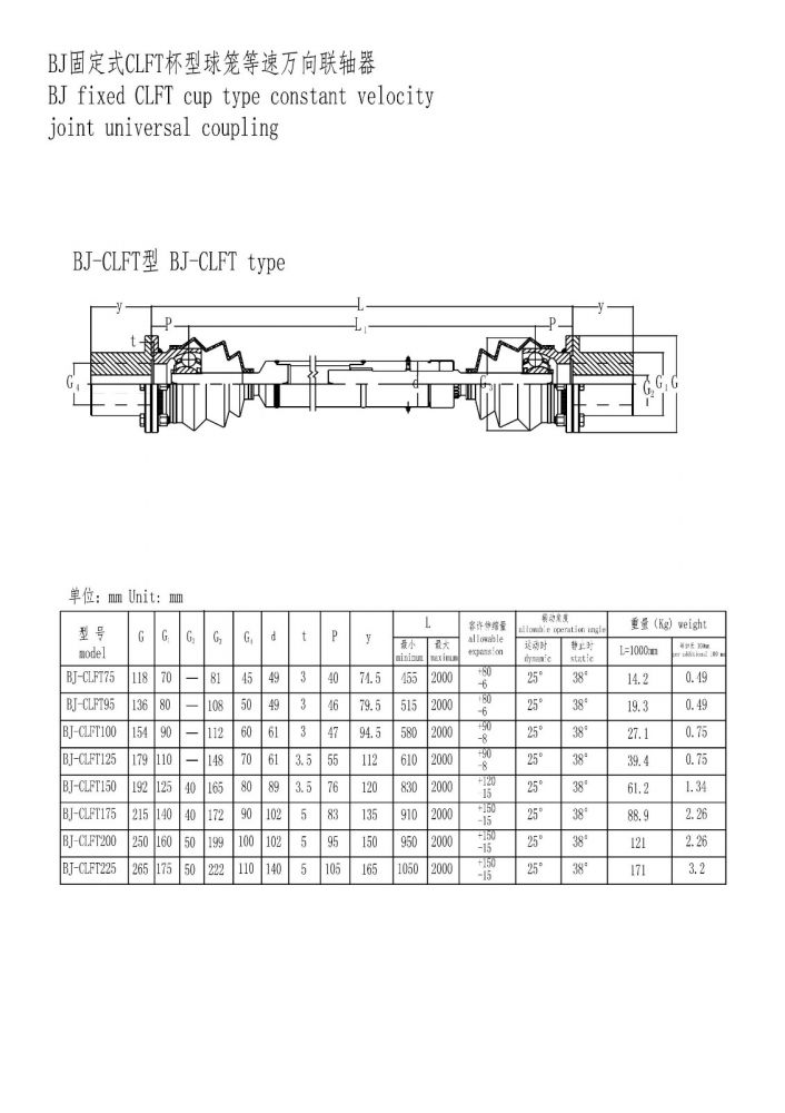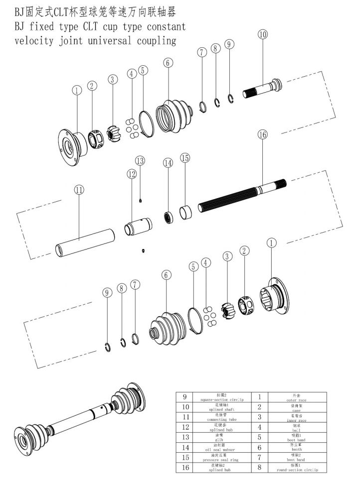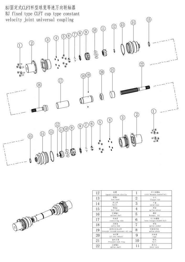 BJ杯型球籠等速萬向聯軸器